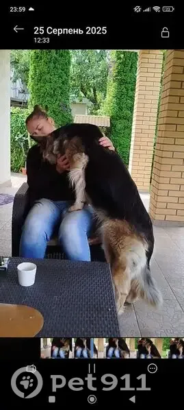 Німецька вівчарка,окрас світло-чорна ближче до білого,не рижий,на задніх лапах бахрама, пухнастий хвіст,завжди була в дворі,за ворота виходила тільки біля двору,голос грубий але дзвінкий,може мати поранену передню праву лапу. Прохання до всіх небайдужих, якщо хтось бачив,чи знайде, пишіть, телефонуйте, я завжди на зв'язку. За винагороду!!! 0507846387 Яна.