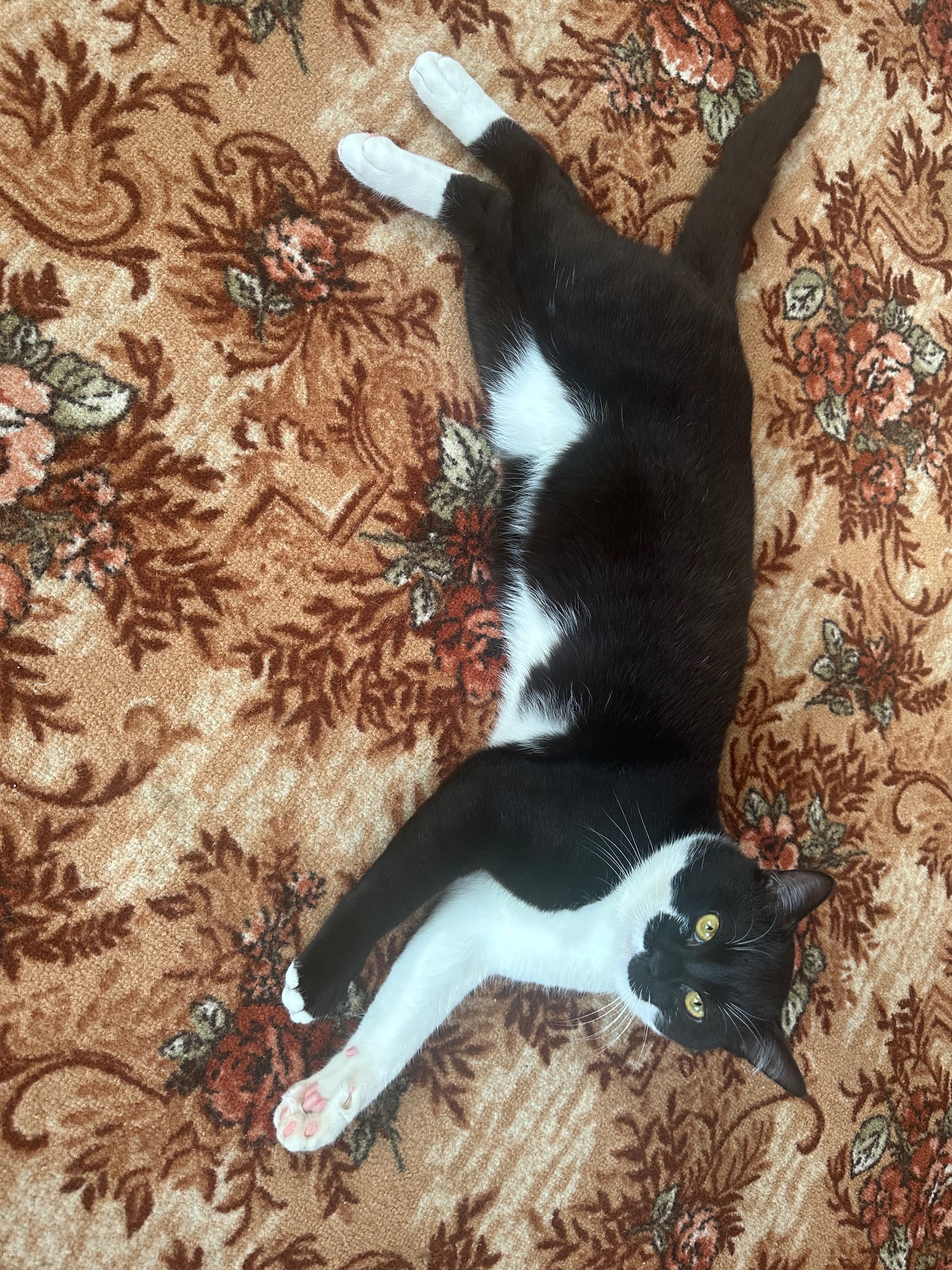 Чорний з білою шиєю та білою лапкою Відгукується на імʼя Дракоша