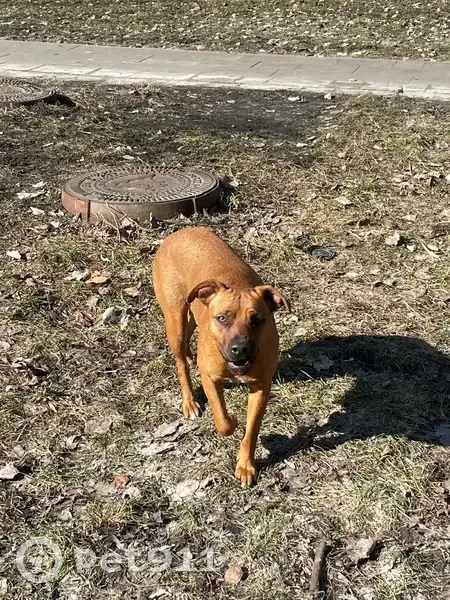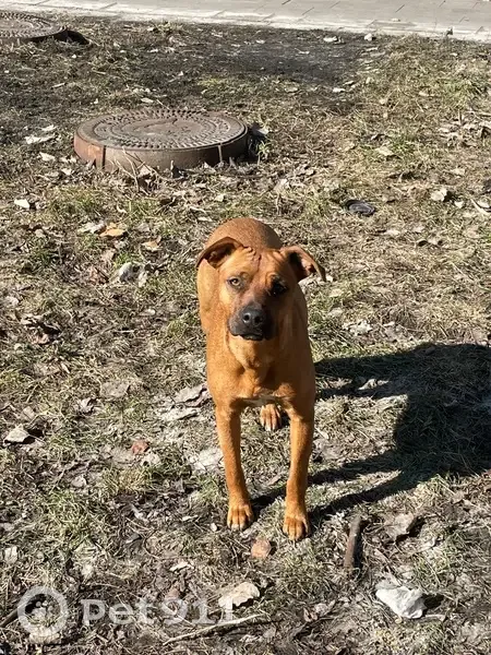 Пісочний колір, пітбуль. Дуже лагідна, боїться, видно, що домашня. Піджала хвостик та вуха і бігає щось шукає чи когось… Можливо її викинули хазяї, але ж породиста, молода можливо пів року їй