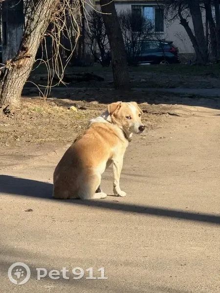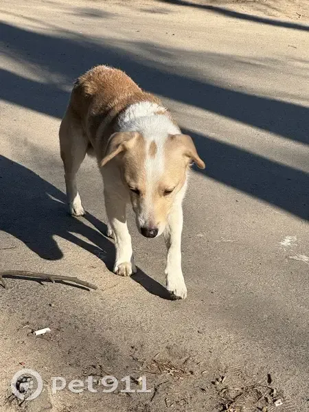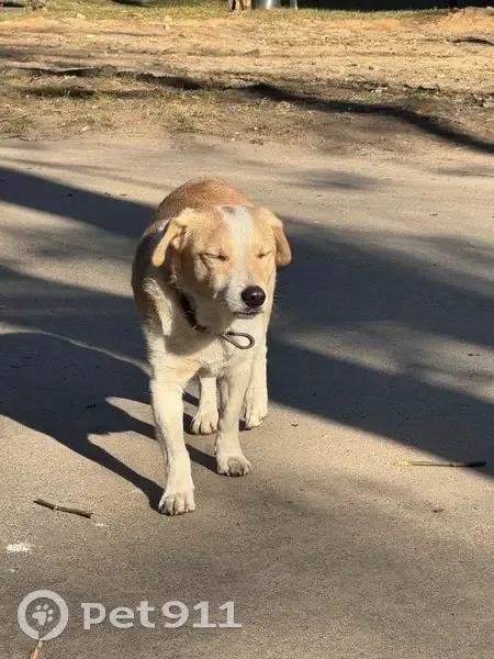 З ошийником, невеликий хлопчик, короткий хвостик. Двічі перебігав дорогу та побіг у двори, видно що загубився, вив. Лякливий, але до людей тягнеться. Орієнтовно бачила по бульвару Вірського (вул. Саратовська), забіг у двір по бул. Вірського 14/9. На жаль, я не змогла його забрати, бо сама із собакою була і він тікав від мене.