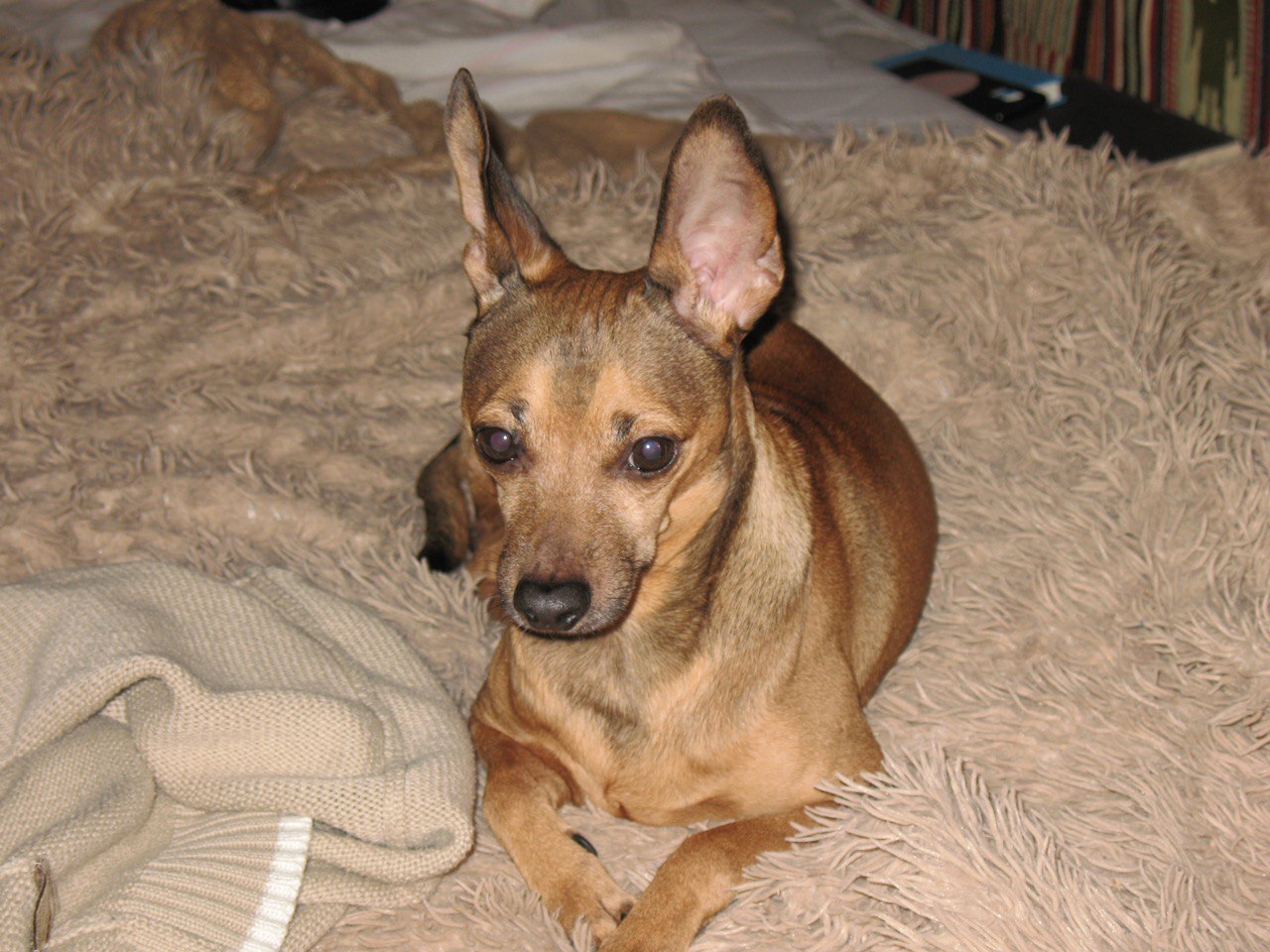 Рудий, маленького розміру помісь Пінчера по характеру привітний, не кусається 13 років. Помірно активний, був вдягнений в сірий костюм і в нашийник що світиться жовтим, можливо розрядився. Загубився в парку Нивки о 17:00 09.12.25 Допоможіть знайти друга сімʼї 0633477055
