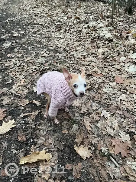 Світло руденька з сивиною, на лобі біла цяточка, була одягнена в бордовий комбінезон, вік 15 років, ліве око сліпе, язик вивалюється , біля соска є невелика пухлина. Пішли на прогулянку в ліс до озера ДВРЗ-Биковня, вона присіла по своїх справах, я трохи пішла вперед, пройшла метрів пʼять, озирнулась, а її нема
