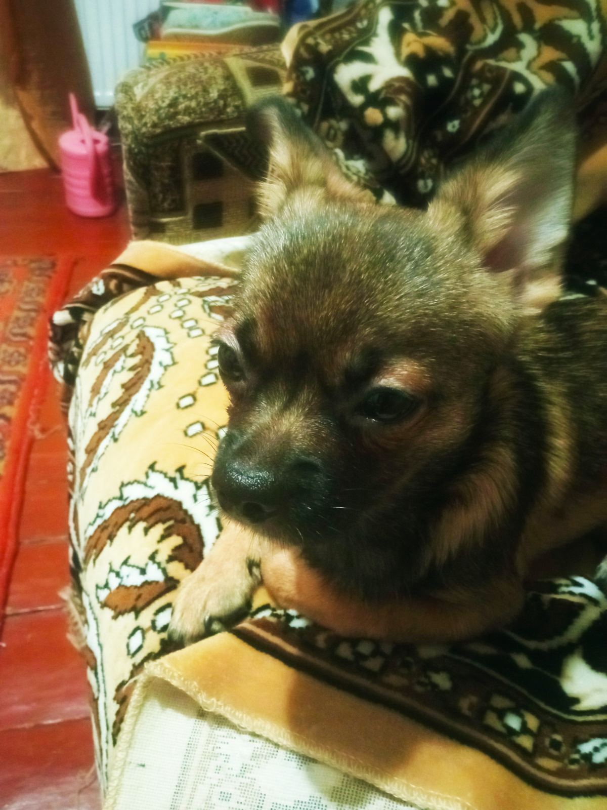 Похожа на чихуахуа, руда маленька ,підібрали...
