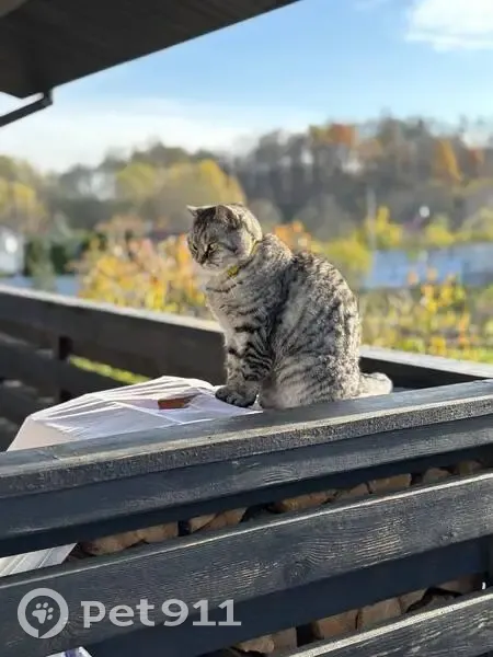 Сіренька (рябенька сіро-біла)прямовуха шотландка з яскраво-жовтим ошийником, стерилізована, пішла гуляти і не повернулась. Ловить мишей, іноді і пташок, але не їсть