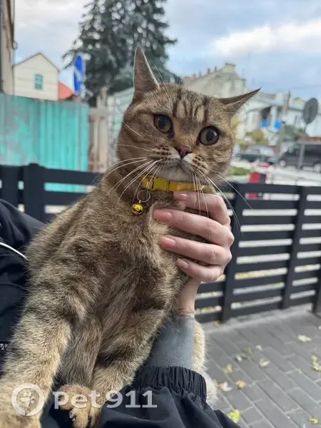 не знаю хлопчик чи дівчинка, в жовтому ошийнику з бубенчиком, видно, що домашній, боїться, під машинами ховався, окрас на фото, щодо породи не знаю, може британець. Зараз біля львівських круасанів, довго не зможу тримати