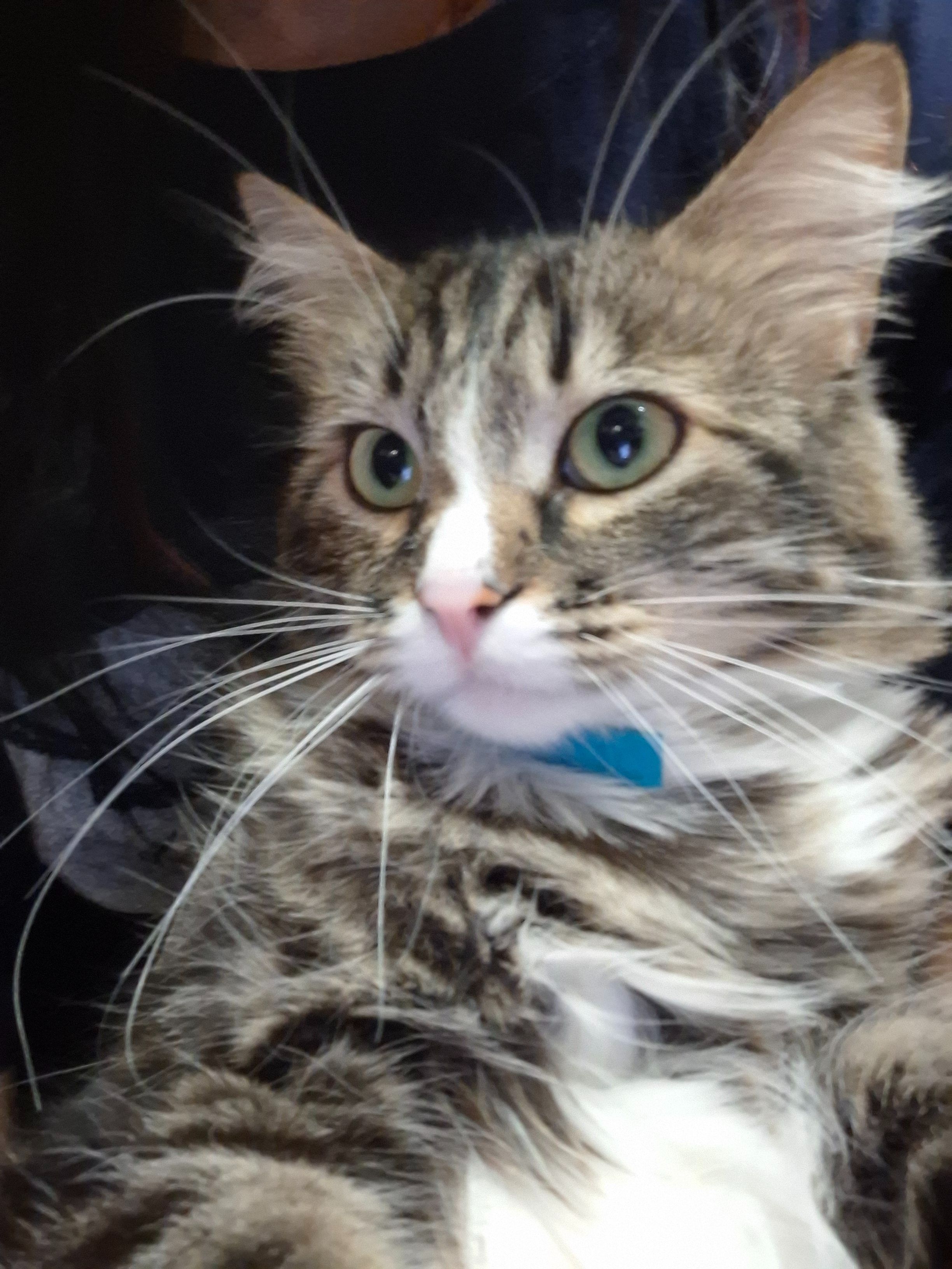 Боня трьохколірна киця, біленькі лапи і животик і коричнево-чорна мордочка і тіло, зелені очі, з особливих ознак дуже слабко мявкає, майже не вміє. Синій ошейник. Пропала в понеділок вечером біля Кайзервальду(Личаківський район, Винниківський ринок) . До рук не йде без смаколиків чи корму (вологого) 2 рочки досить важка дівчинка. Буду дуже вдячна за допомогу у пошуку