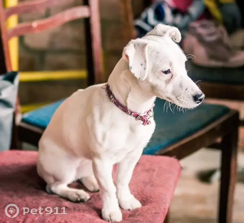 Собаки потеряшки, Гатне, фото: Зникла собака, Інститутська вулиця, Гатне - джек рассел альбінос в червоному нашийнику