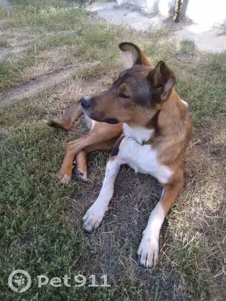 Рудий хлопчик, 45 см в холці. На шиї був зелений ошийник (міг загубити) із білою вшитою етикеткою з телефоном на зворотній стороні. Обережний. Біла грудка, передні лапи більшою частиною білі.