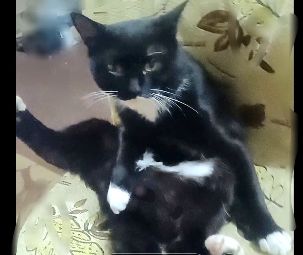 Чорно-білий. Кіт котик. Всі носочки на лапках короткі. Біла пляма на підборідді заходить на верхні губки наче вони зафарбовані. Трохи ходить у розвалку бо була травма тазу в дитинстві. Не мяукає а крякає і пишіть , пухкий. Відзивається на бананчік , банан , баранчік і схожі . Маленький по розмірам. Не кастрований. Зник в одночас з появою божевільної родички сусідки , яка вже крала наших тварин і відвозила в приют або на вулицю далеко від нас . Сподіваємось що він живий десь у притулку чи біля якогось будинку і ми знайдемо його(