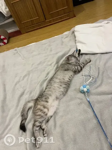 Невеликого розміру, вік приблизно 9 місяців. Сірий окрас в смужку.