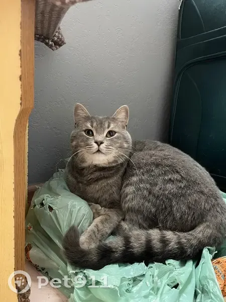 Кіт сірого кольору, короткошерстий з попелястим відтінком. Порода - шотландська прямовуха. Має характерні смуги зміни кольору, хвіст окрасу як в єнота. Кастрований. Вибіг вночі 22.09 з приватного сектора Патріот, не одразу зрозуміли, що він втік. Дуже добрий котик, може бути наляканий. Боїться шуму від автомобіля та мотоцикла. На контакт може не іти. Дуже прошу повернути члена сім’ї за винагороду!