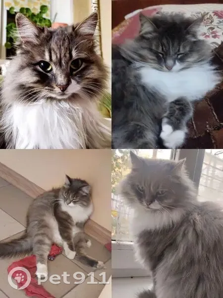 Сіра, дуже пухнаста, біла грудка та білі лапки,також біла шерсть є на животі. На морді є біла пляма тільки справа біля носу. Кішка вулична, вміє ловити мишей, стерилізована, до чужих до рук не йде, майже не мявчить або дуже тихо. Батьки переїхали з Костянтинівки у Черкаську область, жили місяць у квартирі(кішка нікуди не виходила) Переїхали у приватний будинок і Мурзя втекла ввечері у вікно, сподівались що розвідає територію і на ранок повернеться але так і не повернулась. Навкруги кішка нічого не знає.