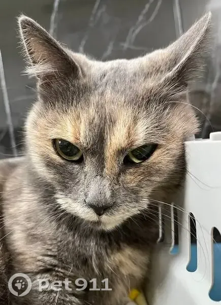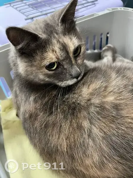 Черепахове (триколірне) забарвлення, очі світло-зелені, доросла (приблизно 6 років). Дуже контактна та ручна. Виглядає домашньою та лагідною. Якщо це ваша улюблениця або ви знаєте її господарів — відгукніться, будь ласка! Передамо справжнім власникам.